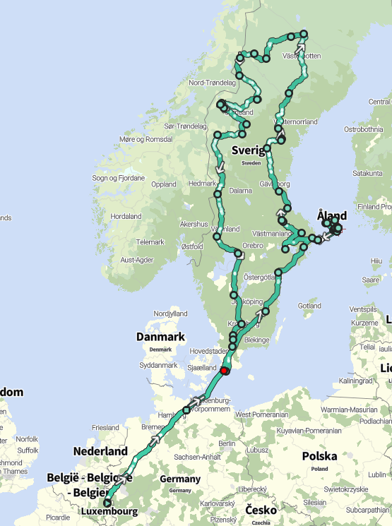 Onze reis loopt eerst door Duitsland dan met de ferry naar Zweden . Vorig jaar bezochten we reeds de
