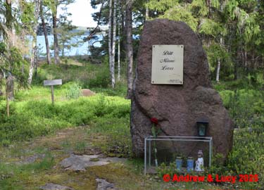 Via een aangelegd pad ( houten plankjes) komt men aan een gedenkteken : een grote minesteen versierd met verse bloemen .