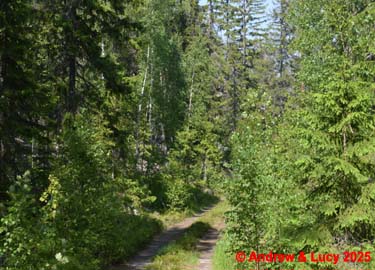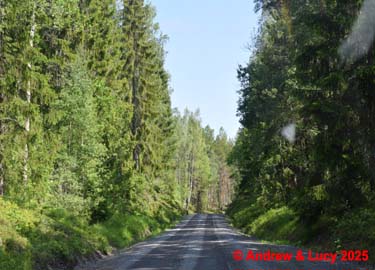 Terug gaat het via de 7 km lange bosweg naar de hoofdweg . Vervolgens richting Mankarbo waar we de E4 nemen richting het noorden .