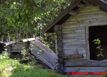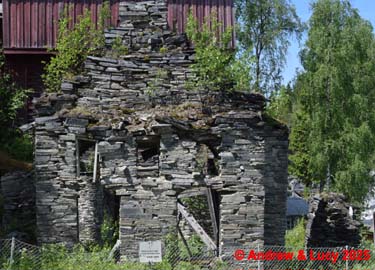 en juist over de burg nemen we links een gravel route . Deze gaat naar een oude ruine nl : de Järnbruksruin .