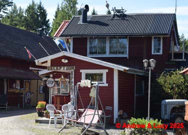 bijzondere camping in de omgeving van Gullspång . De ingang van de camping