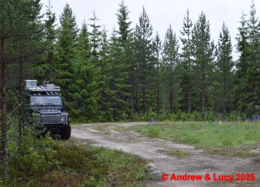 tank bij . Juist voorbij het dorp gaat het rechts af richting Kroksätra . Na exact 4 km nemen we links een bosweg .